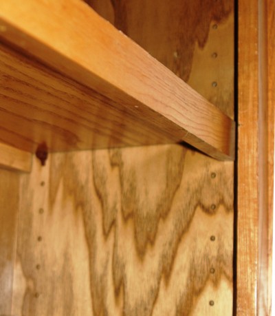 CnC line boring for adjustable shelving, typically using the all metal, shank pegs primarily / also offered as a special order with white/brown end caps